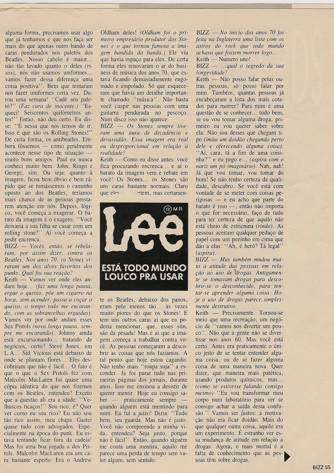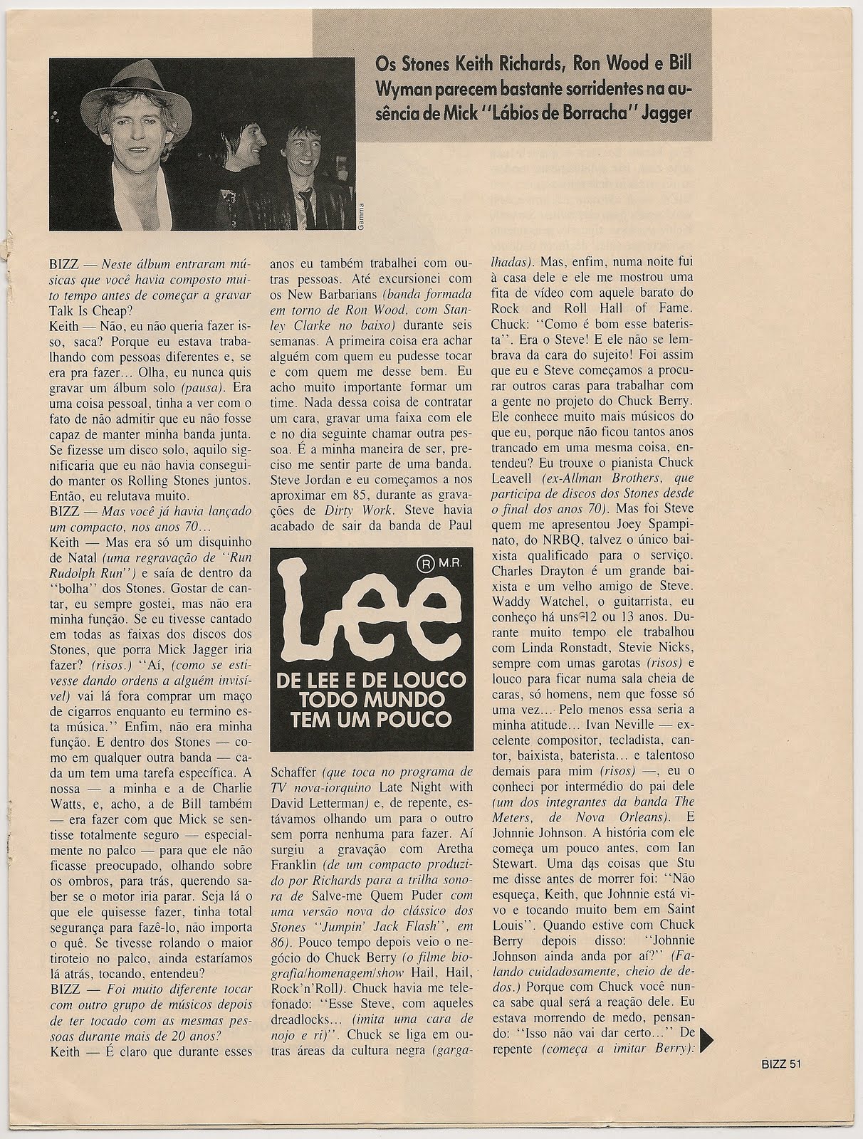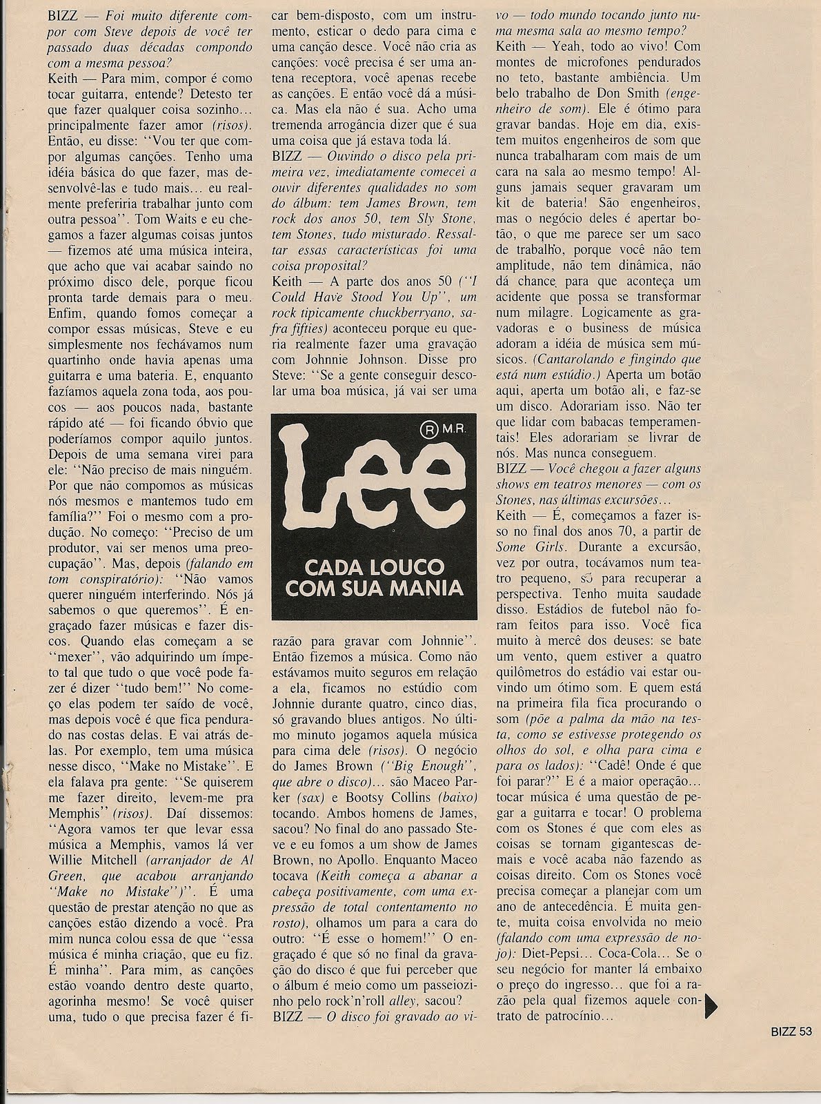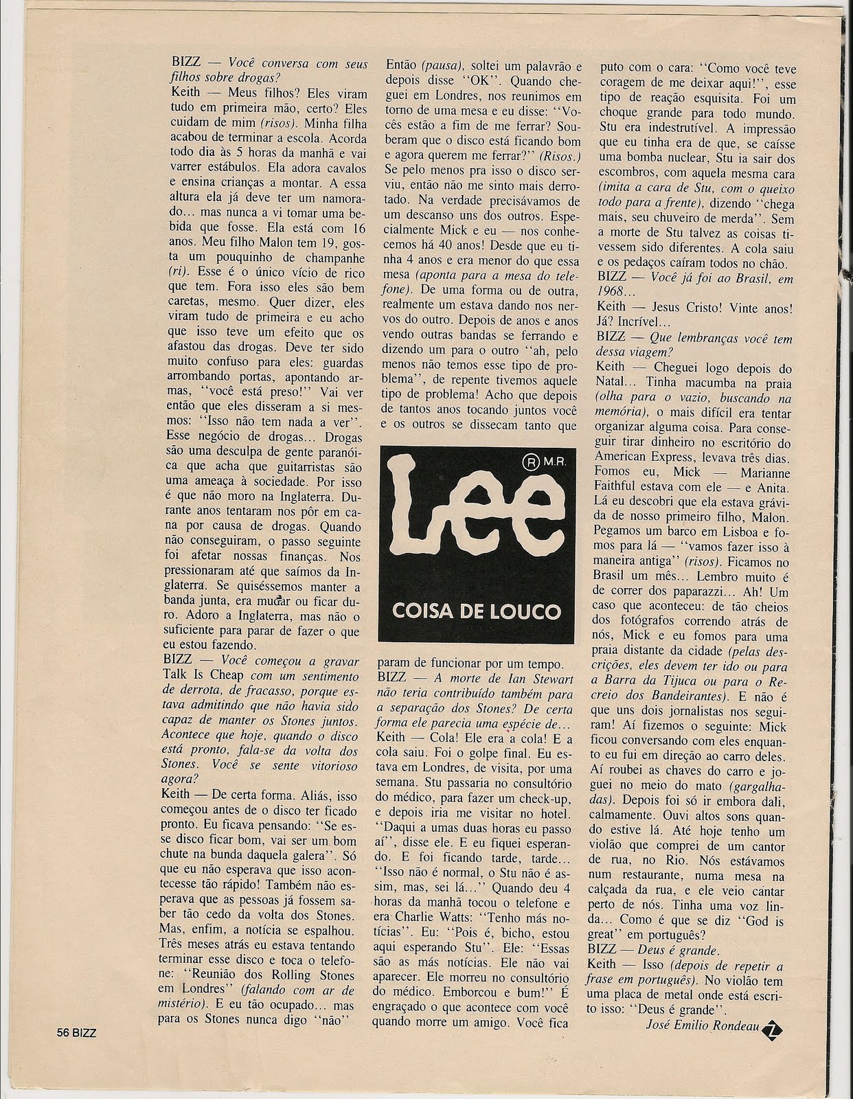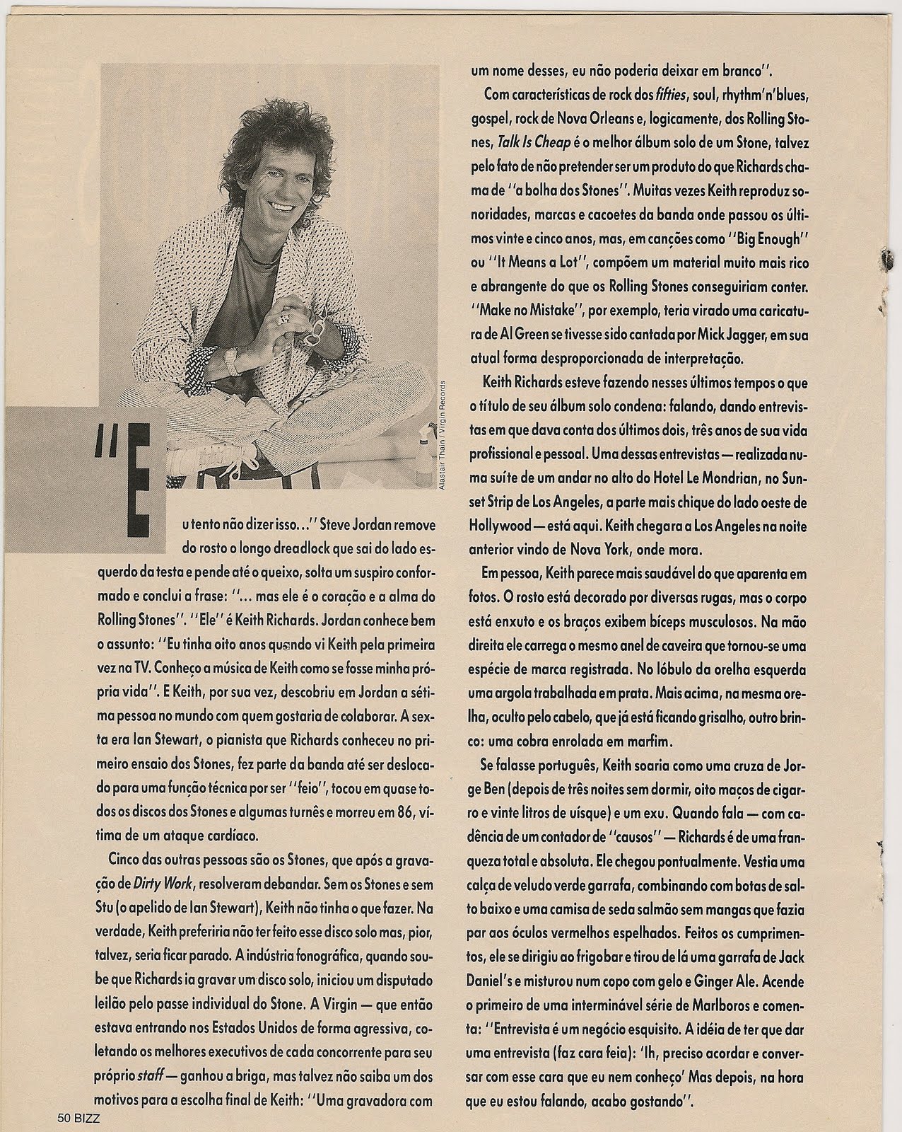 Como prometido, aqui vai entrevista concedida por Keith a José Emílio Rondeau. A conversa ocorreu em 1988, quando do lançamento do álbum Talk is Cheap. Para ler, basta clicar sobre as imagens. Vamos lá.