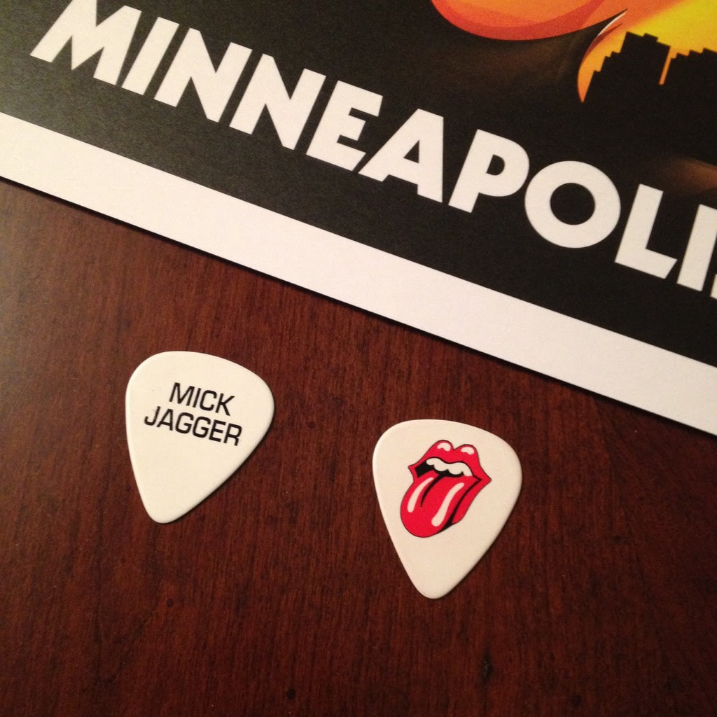 Minha filha conseguiu duas palhetas de Mick! Eu estava lá quando ela conseguiu a segunda. As palhetas foram alcançadas a ela (em duas ocasiões diferentes) por um segurança que acompanhava Mick enquanto ele se movia pelo palco. O segurança estava próximo a nós, e caminhou em direção a minha filha e lhe deu uma palheta. Ela estava muito emocionada.